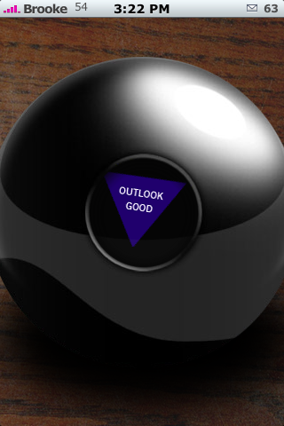 Actually, Magic from the iapp a day thing was pretty stupid and disappointing. Although you can input your own answer, you also get networked into everybody else’s inputs. Therefore you get answers like “Let’s go shopping” or “I like tacos.” Thanks Steve Saxon for a MUCH BETTER Magic 8 ball app :)
