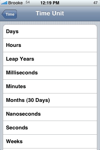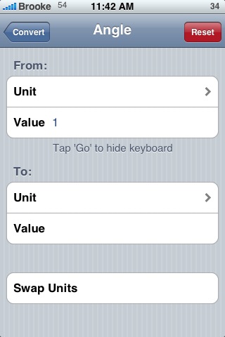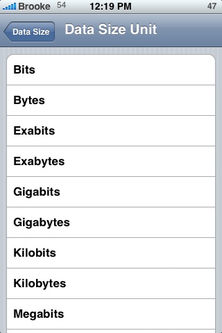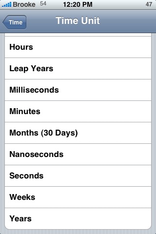 Great feature! Another cool new change to the app is the way that the unit list opens…totally Apple style…very cool! Some units were also added to a few measurements (see below for complete list of added units and more change to the app). Convert is available through the BigBoss source. Below are the screenshots.