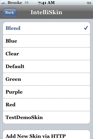 IntelliSkin – This is the same feature as in the previous version, it has just been moved to the main menu. There are a few new Skins to choose from; Blend, Blue and Clear. There is also a Add New Skin via HTTP option which allows you to upload your own skin into IntelliScreen.