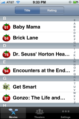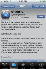I personally like to have all my information in one spot. Which means I would prefer to see the address of the theater even when I am in the Movies search. Other wise, once I find a movie I want to see and figure out which theater is showing it…I have to go into the Theaters option in order to get the map and phone number for that theater. But, that is just personal preference. I do like that you are given a description and rating of the movie as well as the theaters it is available in.