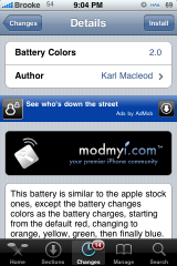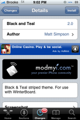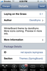 There were a few mods today in Cydia but, I’m only going to point out a few of them. Two themes, one battery mod and one lock screen mod. The two themes Laying on the Grass (via iSpazio) and Black and Teal (via modmyi) are both very unique themes. The battery mod, Battery Colors (via modmyi), is a simple mod of the stock battery that will change the color of your battery based on percentage (red, yellow, green, blue). Finally the lock screen mod, Tinker Bell Lockscreen (via BigBoss), is a very nicely designed lock screen mod including the battery, slider and wallpaper. Below are the screenshots of each mod. Note: all of the mods are activated via WinterBoard.