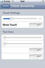 The majority of the new settings options are located in the Supreme Preferences options (scroll down, it’s just after the Photos option). However, it does add a few amoungst your other Settings options as well. In the General settings, you will now see an option for Auto-Dim as well as Touch Sensitivity. the Auto-Dim feature allows you to choose an how long you would like your screen to stay on before it dims. The options range from Never to 10 minutes. The Touch Sensitivity option allows you to change how sensitivity your iPhone or iPod Touch’s touch screen is. This ranges from 0.0 to 16.0. I would not suggest turning it all the way up to 16.0…it will take you 30 minutes to touch it perfectly in order to turn it back down!! Both of these features seem to work with correctly. You will also notice that it adds an iTunes option on your main settings menu. When selected, you will have the option to turn on/off Save Password.