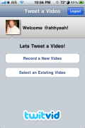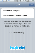 I am REALLY excited about this app. First of all, it’s free, but I’d pay for this app in a heartbeat. Very very well done. Ok, let’s get on with it. TwitVid lets you post your videos taken by your iPhone 3GS to your Twitter account. Just install the app, login, either record a new video or chose an exciting one, add your tweet and you’re done! It creates a nice short URL for your tweet like this and adds it to the end: http://www.twitvid.com/0343E