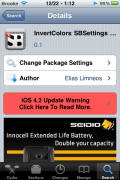 InvertColors SBSettings is an SBSettings toggle that allows you to quickly toggle the White on Black option from the stock Settings. The White on Black option basically inverts the colors on the device. If you’ve never seen it… it’s kind of trippy… you should check it out. One thing to note is that when you install this toggle, it is automatically added into the SBSettings drop-down. Usually when you install a toggle you have to go into the More/Set Toggle option in SBSettings and turn it on however, this one is turned on automatically when you install it. I didn’t have any issues with the toggle… it worked perfectly. InvertColors SBSettings is available via the BigBoss source.
