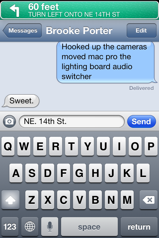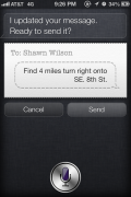 What’s encouraging is she can understand herself. It’s kind of annoying but it would be nice if either; it wouldn’t let you use that feature when you’re close to an upcoming voice prompt, it would wait until you’re done, or shut off voice to text during the announcement. Here’s a couple screenshots of Siri’s directions being typed out by the voice to text feature.